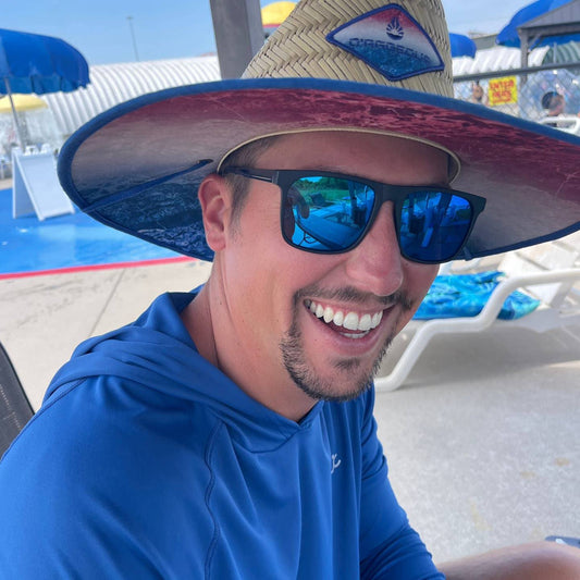 Double Bar S Damascus Pocket Knife | Grey & Blue Wood Handle